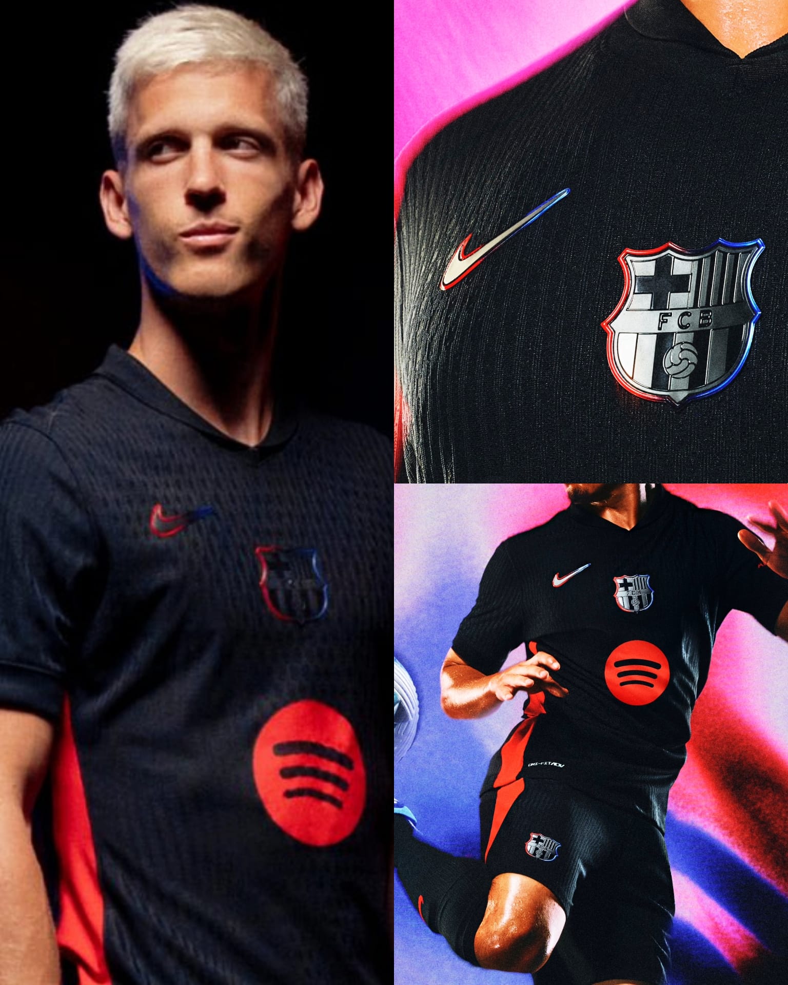 Le maillot extérieur du FC Barcelone pour la saison 2024-2025 est une véritable œuvre d'art. Avec sa base noire élégante, rehaussée de détails dorés éclatants, il incarne parfaitement le mélange de tradition et d'audace qui définit le club catalan.