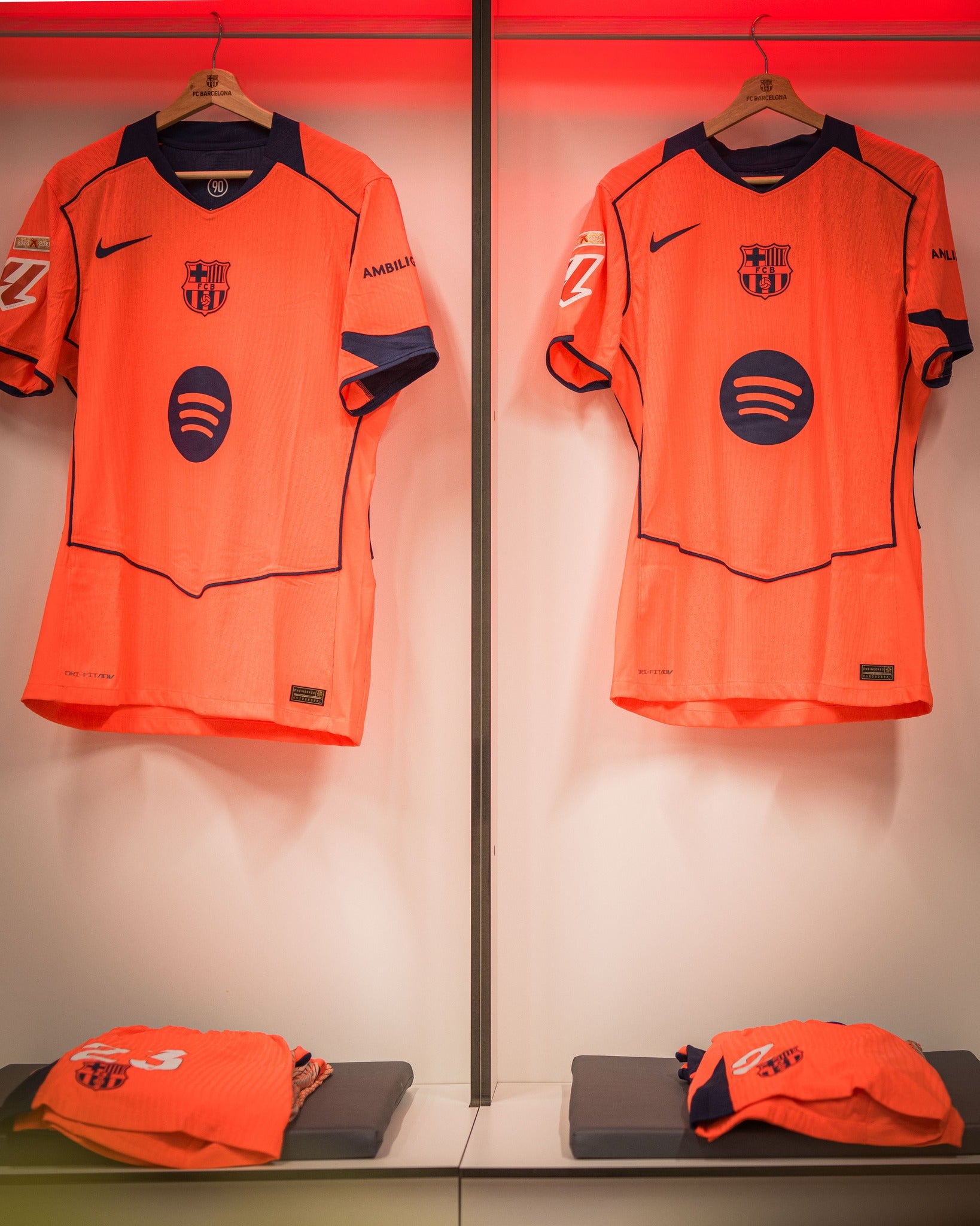 Ce maillot, baptisé “Bright Mango”, rend hommage au mythique maillot orange porté lors du sextuplé historique de 2009. Sa couleur vive et énergique symbolise la passion et la créativité du Barça, tandis que les détails bleu nuit apportent une touche d’élégance et de modernité.